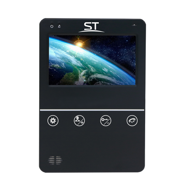 Домофон ST-M100/4 (S) ЧЕРНЫЙ, Дисплей: 4", Разрешение: 480*272, Поддерживаемые стандарты видео: CVBS, Количество подключаемых панелей: 1, Количество подключаемых камер: Нет, Количество подключаемых мониторов: Нет, Интерком: Нет, Режим «не беспокоить»: Да, Слот под SD карту: Нет, Количество мелодий звонка : 12, Автоответчик: Нет, Функция фоторамки: Нет, Возможности подключения: 1 вызывная панель, Мобильное приложение: Нет, Напряжение питания: АС 100-240В (встроенный БП12V1A), Способ монтажа : Накладной (монтажная пластина), Рабочая температура : -10°С...+60°С, Пластик, 170х117х17мм.